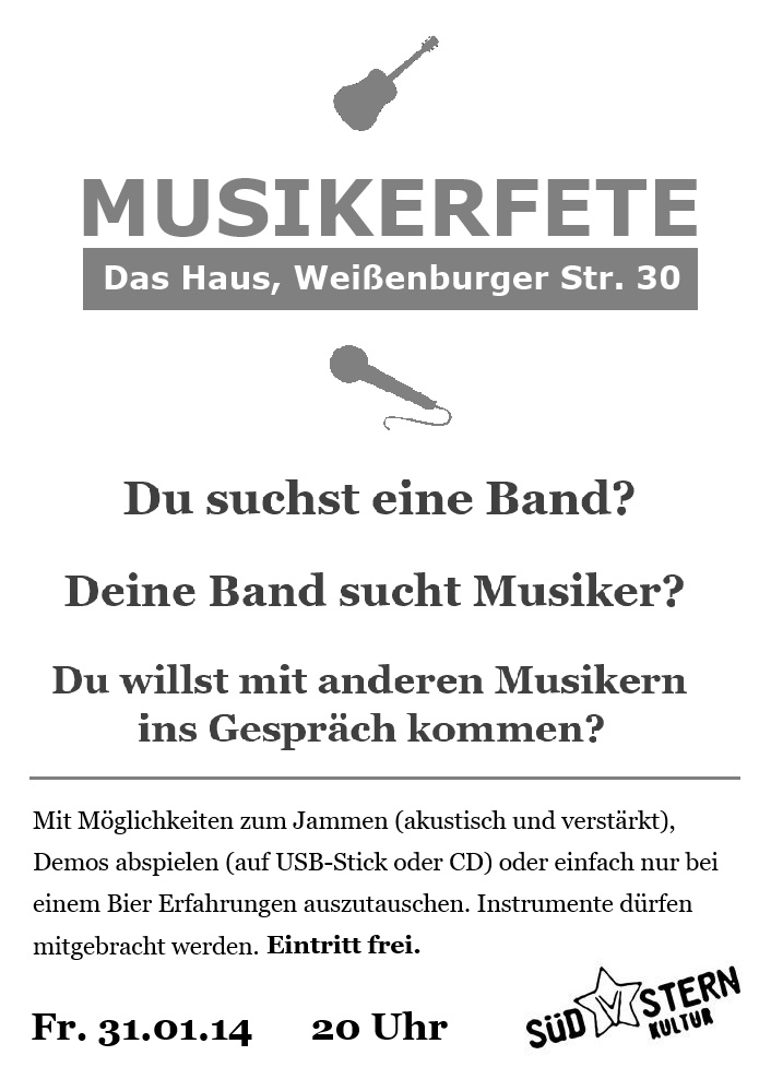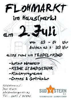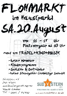 Wir haben einen Traum und suchen Unterstützer: Die seit 5 Jahren stetig wachsende Arbeit braucht einen größeren Konzertraum und soll dauerhaft gesichert werden. Daher möchte der Südstern e.V. das zum Verkauf stehende Gebäude kaufen und erweitern. Dazu brauchen wir die Hilfe von Investoren, Stiftungen und vielen Freunden. Jeder Euro hilft! Als gemeinnützig anerkannter Verein zur Förderung von Kultur, Sport, Bildung, Religion und Jugendhilfe können Spenden steuerlich geltend gemacht werden. Um unsere Mitglieder und Freunde über den aktuellen Stand der Dinge zu informieren und gemeinsame Aktivitäten zu planen, laden wir am kommenden Sonntag zum sogenannten "Haus-Spar-Tag". Noch fehlen knapp 98%, aber gemeinsam können wir die Prozente purzeln lassen...