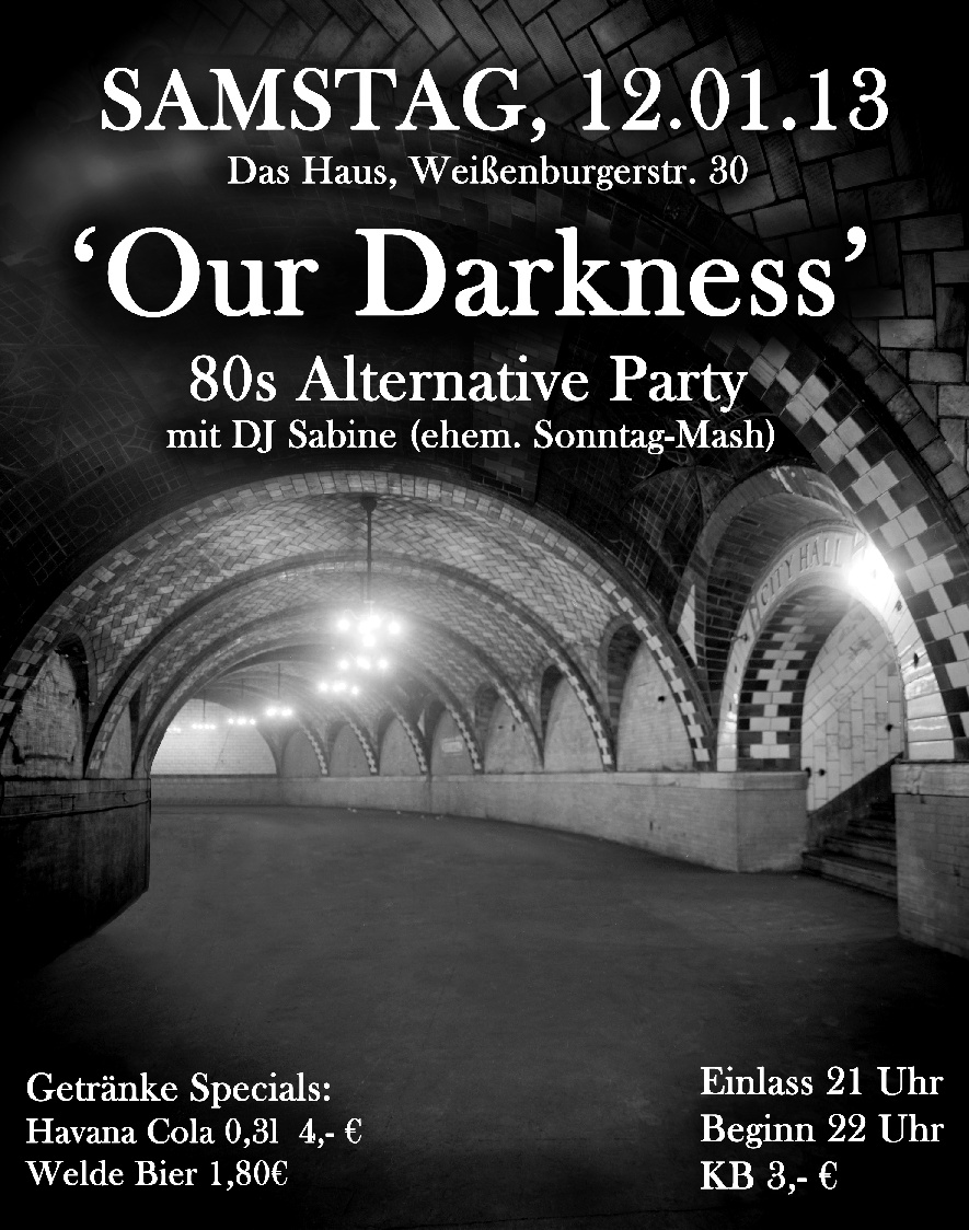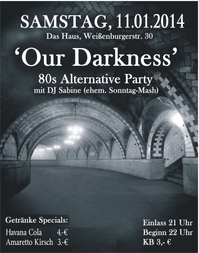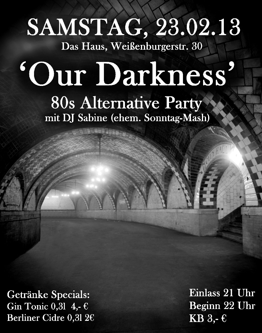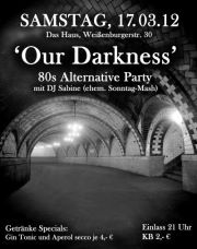 SA, 22.Okt: 20. OUR DARKNESS - 80s Alternative mit DJ SABINE