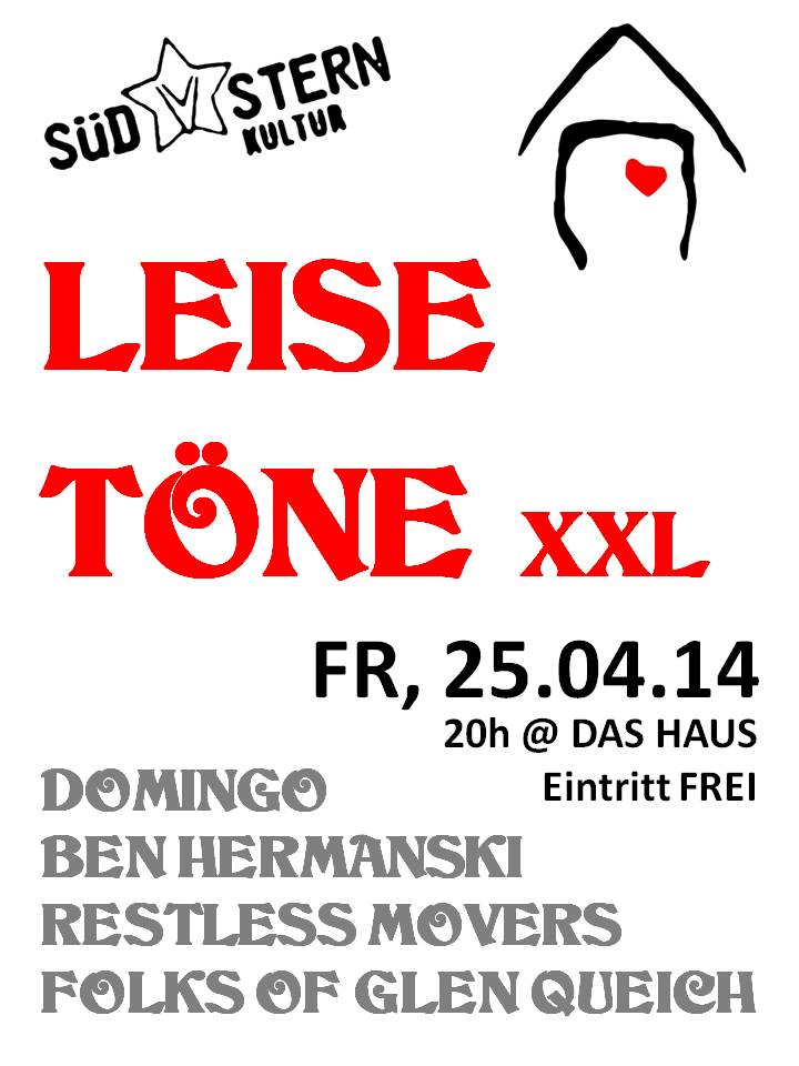 19.11.09 Freunde der gepflegten Abendunterhaltung, der Gemütlichkeit, bequemer Sofas und unter die Haut gehender Livemusik: Heute laden wir wieder zur beliebten Leise Töne Reihe mit drei tollen Liedermachern. Ein besonderes Highlight erwartet euch am Samstag 28.11.09: Da beehrt uns Florian Ostertag . Mit im Gepäck hat er sein brandneues Album The Constant Search und den Filmsong von Liebe Mauer (der heute in die Kinos kommt). Florian spielt faszinierenden Akustik Pop und hat sich als "Storyteller" (Konzert im Mai) in die Haus-Herzen gespielt. Und für die letzten leisen Töne im alten Jahr, kommt ein hübsches Berliner Damentrio namens Marilutelli . Wer sich dahinter verbirgt, erfahrt ihr unter Termine (am 17.12.09). Wem unsere Rock- und Metalkonzerte zu laut oder zu wild sind, hat hier drei herzerfrischende Alternativen - bei freiem Eintritt...!