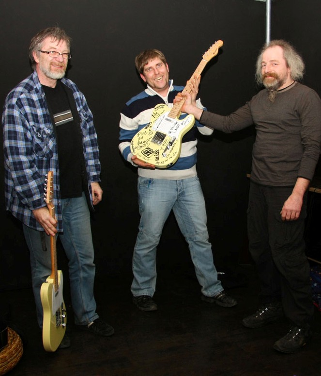Das erlebt man auch nicht alle Tage! Zur Übergabe der RH 2010 E-Gitarre hatte Sponsor Michael Fischer überraschenderweise eine ZWEITE dabei. Da der Hauptgewinnn als Instrument zum Spielen genutzt wird, entschied sich Gundis Ehemann Charles (im Bild links) für die Gitarre ohne Autogramme und überließ das Original zur Freude aller Anwesenden dem Haus. Sie erhält einen Ehrenplatz neben der Akustik-Gitarre von 2009, die Familie Klich ersteigerte und anschliessend dem Haus spendete. Soviel Großzügigkeit und Verbundenheit mit unserem geliebten Selfmade-Kulturprojekt macht uns schon ein wenig stolz - vor allem aber seeeehr glücklich! HERZLICHEN DANK allen Beteiligten!