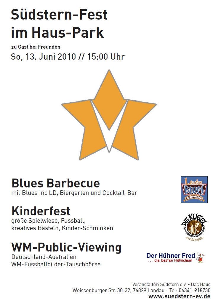 28.08.2007 So,Das Sommerfest ist vorbei, war ein voller Erfolg und wir sind mega dankbar. Sonnenschein, friedliche Atmosphäre, immer was los. Von allen Seiten gabs Lob und anerkennende Worte, auch von der Stadt und in der Rheinpfalz. Hier der Zeitungsartikel. Vielen, vielen Dank allen Helfern und Jesus! Jetzt gehts mit nem Kracher wieder richtig im Haus los: Hauts euch rein =>TERMINE